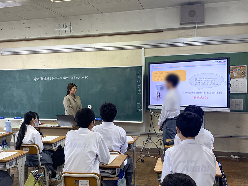 「中学校で義務教育は終了。社会人の皆様に仕事のやりがいや実際に大変なことなどを生徒にお話しいただき、将来のことを考えるきっかけを与えてくれればうれしい」とお話がありました。