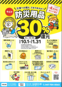※ICHICO防災用品30%還元とは別のキャンペーンになりますので、お間違いなく!